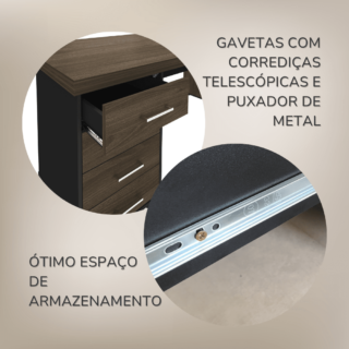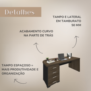 Um escritório moderno precisa de móveis à altura, e a Mesa Tamburato com Gavetas é ideal para fazer do ambiente corporativo um local agradável e sofisticado! Ela é perfeita para aumentar o bem estar e a produtividade dos colaboradores, já que possui um tamanho adequado para maior conforto e uma ampla superfície de trabalho. Além disso, esta mesa conta com um gaveteiro com 4 gavetas que podem ser trancadas, para que seu trabalho fique ainda mais organizado e seguro. Corrediças telescópicas e puxadores de metal cromado nas gavetas garantem maior qualidade e requinte.