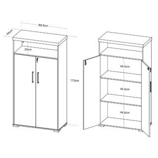 Na parte interna, o armário tem 3 amplas prateleiras, com excelente estruturação para armazenar com segurança e organização seus materiais e pertences. Falando em segurança, você pode trancar as portas do armário e ficar tranquilo de que seus documentos e objetos estarão preservados.
