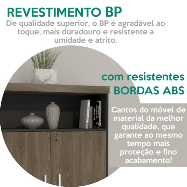 Seu revestimento em BP torna o produto mais resistente, com um acabamento da melhor qualidade, valorizado ainda mais pela elegante combinação do amadeirado charuto com preto! Você vai amar!