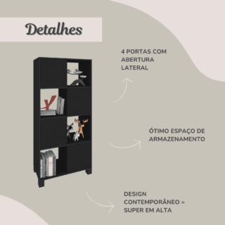 Seus nichos vazados intercalados e seus pés lineares e compactos conferem um design arrojado e contemporâneo ao ambiente. Materiais de alta qualidade garantem um produto robusto, forte e sofisticado. Seu padrão de acabamento é em BP, forma de aplicação que garante maior resistência a riscos, uniformidade nas cores, qualidade e durabilidade ao produto. Seja em seu escritório, quarto, closet, ou até mesmo em sua sala, este armário é a solução ideal para organizar e decorar qualquer ambiente! Não perca esta incrível oportunidade!