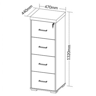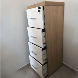 Quatro gavetas com suporte para pasta suspensa e trilho telescópico, medida interna: 375x335x229mm (CxPxA);