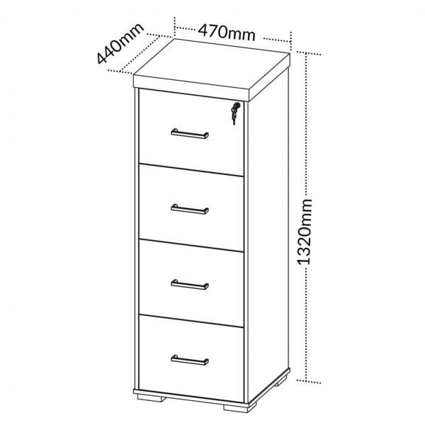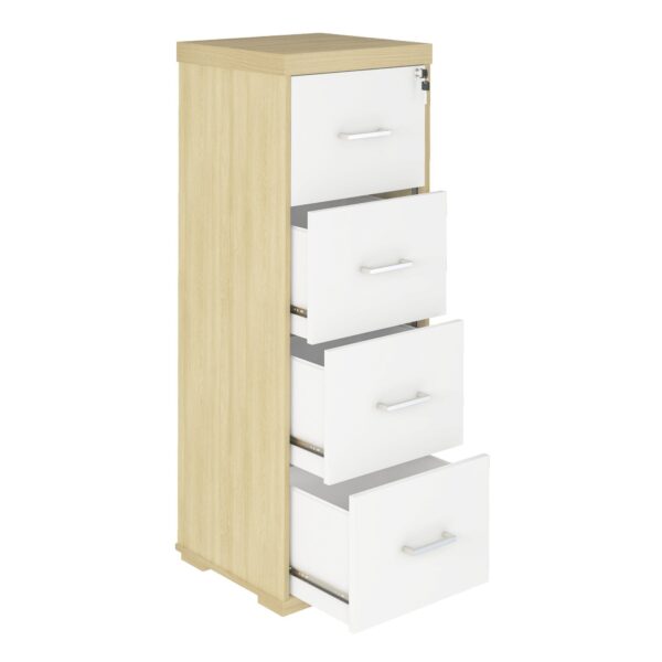 Quatro gavetas com suporte para pasta suspensa e trilho telescópico, medida interna: 375x335x229mm (CxPxA);