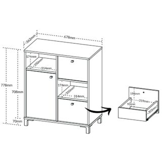 – Uma porta em MDP 15mm com fita de borda ABS 0,45mm de espessura;