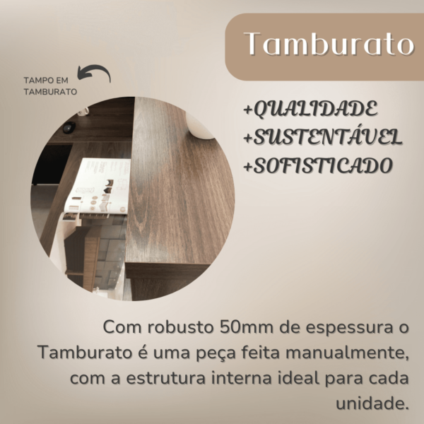 – Tampo superior e laterais em tamburato de 50mm de espessura;