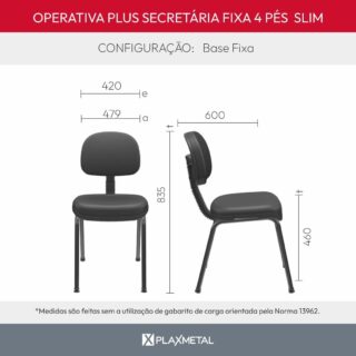 Cadeira Operativa Plus Secretária Fixa 4 Pés Slim