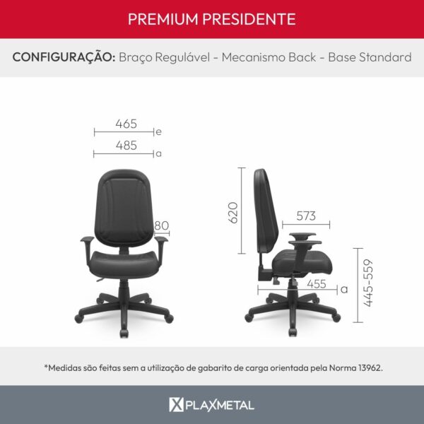 A Premium Presidente explora a versatilidade. Adapta-se perfeitamente a diferentes ambientes corporativos, espaços multifuncionais e pode ser utilizada nos mais diversos lugares, desde escritórios amplos até o conceito de home office. Sua maleabilidade de uso associada às formas anatômicas do encosto e assento definem esse modelo exclusivo da Plaxmetal.