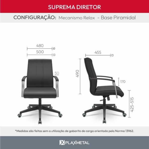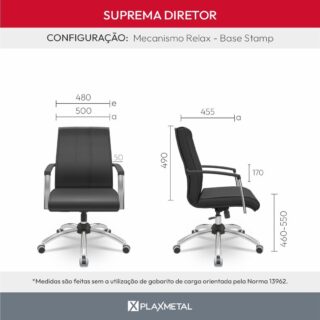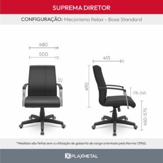 A Suprema Diretor une sofisticação e conforto, em uma cadeira versátil cujas linhas cabem tanto num ambiente diretivo como em um home office. Conta com duas opções de mecanismo, Relax Plax e Excêntrico, e quatro opções de base: Alumínio, Stamp Cromada, Piramidal e Standard. Nessa peça, a beleza está nos detalhes das cores dos braços e das estruturas que podem ser cromadas ou pretas.