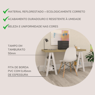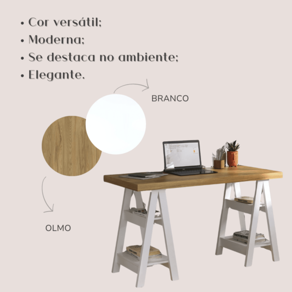 Uma grande vantagem desta escrivaninha é que ela é super versátil, ou seja, pode ser usada em qualquer ambiente que você imaginar, sendo uma mesa para estudar, trabalhar, jogar, ou um suporte para trabalhos artesanais como costura, pintura e desenho! Basta deixar a imaginação te levar…