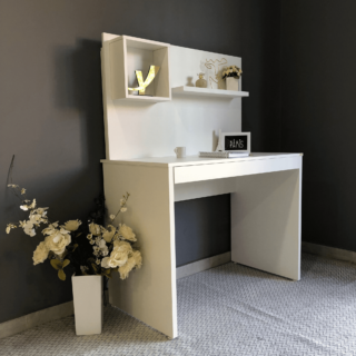 O painel fixo à escrivaninha contém um nicho e uma prateleira, para que você possa organizar ainda melhor seu espaço, com decorações, livros e materiais sempre à mão. Além disso, assim você não danifica sua parede com furos e riscos.