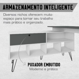 Torne seu ambiente mais bonito e produtivo com esta linda Escrivaninha em L, perfeita para tornar os momentos de trabalho ou estudo mais agradáveis!