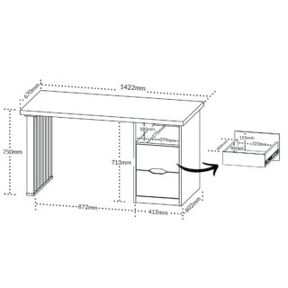 • 2 gavetas com corrediças telescópicas e abertura usinada
