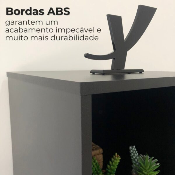 – Estrutura da estante em MDP 15mm com fita de borda ABS 0,45mm de espessura;