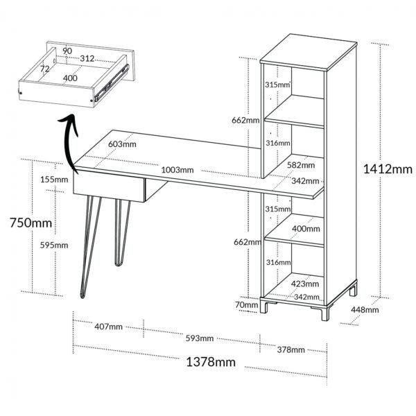 Com design moderno e autêntico, esta escrivaninha é a fusão perfeita entre beleza e funcionalidade para transformar seu home office, casa ou escritório!