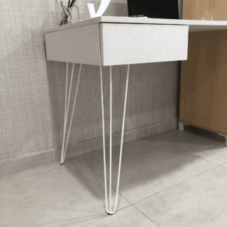 O robusto tampo de 18mm de espessura oferece um generoso espaço de trabalho ou estudo. O grande destaque é pelo acabamento BP na cor terrazza, com aparência de granilite, que é uma grande tendência no design de interiores por trazer suavidade e garantir uma estética única!
