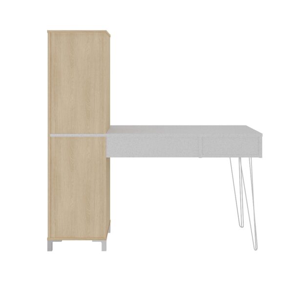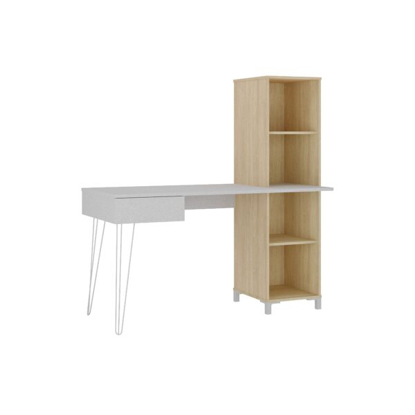 Eleve seu espaço de trabalho com a Escrivaninha Fusion! Com design inspirado no estilo industrial, ela agrega traços retos e belos pés de metal “hairpin legs”. Além de ser estilosa, esta escrivaninha com estante é extremamente funcional, oferecendo diversos nichos para armazenamento e decorações, além de uma prática gaveta abaixo do tampo para materiais do dia a dia.
