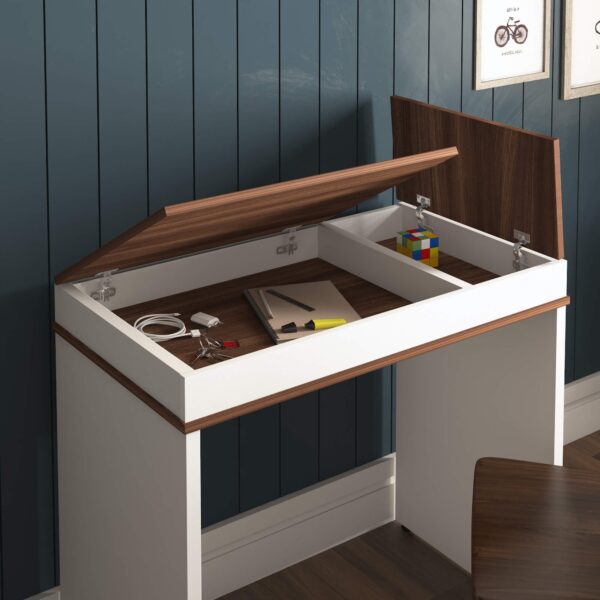 A bagunça e a falta de espaço podem ser um grande problema, mas a Artany criou a solução para isso: a Escrivaninha Mind! Seu diferencial é o amplo espaço interno que ela possui, perfeito para guardar livros, cadernos, materiais de escritório e até mesmo seu notebook, coisas que geralmente ocupam muito espaço.
