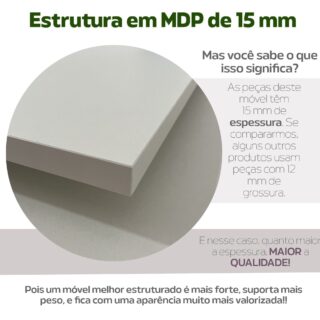 O espaçoso tampo garante muito conforto e comodidade, enquanto os 8 nichos são ideais para manter o local em ordem, já que proporcionam amplo espaço para facilitar a organização no seu dia a dia. Matéria prima ecologicamente correta e revestimento em BP de alta qualidade proporcionam resistência a impactos, atrito e umidade, certificando uma maior durabilidade ao móvel. O produto perfeito para aumentar o bem estar e a eficiência no trabalho, já que possui o tamanho ideal para maior conforto e produtividade!