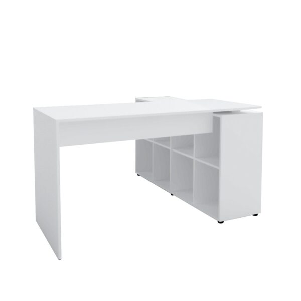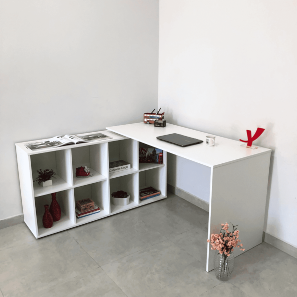 O espaçoso tampo garante muito conforto e comodidade, enquanto os 8 nichos são ideais para manter o local em ordem, já que proporcionam amplo espaço para facilitar a organização no seu dia a dia. Matéria prima ecologicamente correta e revestimento em BP de alta qualidade proporcionam resistência a impactos, atrito e umidade, certificando uma maior durabilidade ao móvel. O produto perfeito para aumentar o bem estar e a eficiência no trabalho, já que possui o tamanho ideal para maior conforto e produtividade!