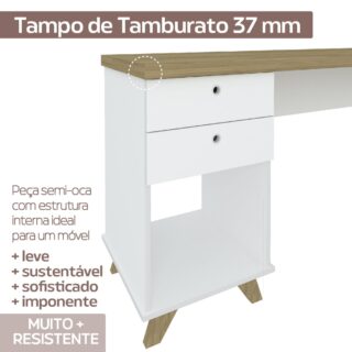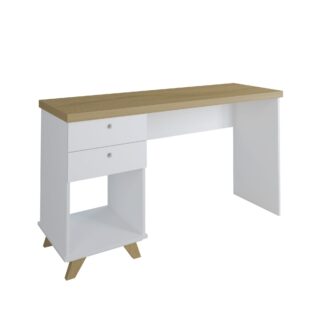 Trabalhe e estude de maneira organizada e produtiva com esta linda escrivaninha, perfeita para você transformar o ambiente em um local agradável e charmoso. Seu belo design retrô é proporcionado pelos pés angulados, detalhe que faz toda a diferença na aparência final. É muito versátil e se adapta ao seu estilo, podendo ser usada em home office, para estudo, e também em escritórios mais formais. O nicho e as gavetas são ideais para manter o local organizado, já que guardam todos os seus objetos, livros e materiais com muita elegância. O amplo tampo garante muito conforto e comodidade, para você trabalhar ou estudar com espaço para seu computador, notebook, papéis, livros e cadernos. Materiais e o revestimento de alta qualidade proporcionam a beleza e alta qualidade que sua casa merece!