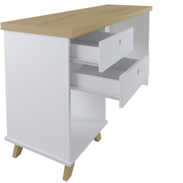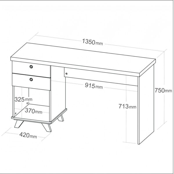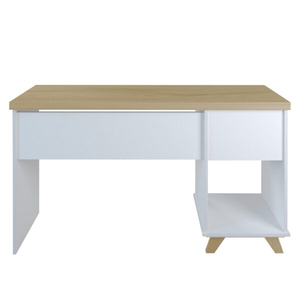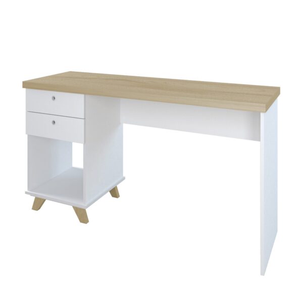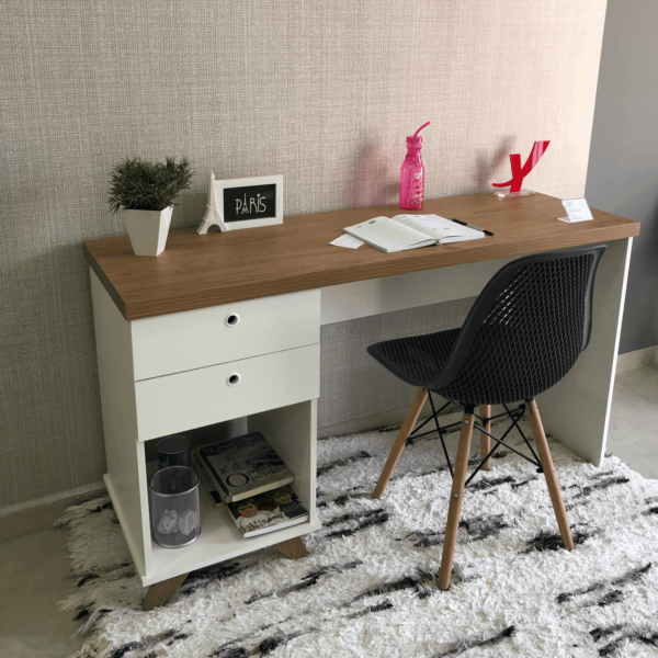 Trabalhe e estude de maneira organizada e produtiva com esta linda escrivaninha, perfeita para você transformar o ambiente em um local agradável e charmoso. Seu belo design retrô é proporcionado pelos pés angulados, detalhe que faz toda a diferença na aparência final. É muito versátil e se adapta ao seu estilo, podendo ser usada em home office, para estudo, e também em escritórios mais formais. O nicho e as gavetas são ideais para manter o local organizado, já que guardam todos os seus objetos, livros e materiais com muita elegância. O amplo tampo garante muito conforto e comodidade, para você trabalhar ou estudar com espaço para seu computador, notebook, papéis, livros e cadernos. Materiais e o revestimento de alta qualidade proporcionam a beleza e alta qualidade que sua casa merece!