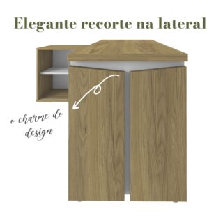 Com design cautelosamente elaborado, o móvel tem um charmoso recorte na lateral, peças no imponente Tamburato 37 mm, e um brilhante puxador de metal cromado, encantando à primeira vista. Além de linda, ela é muito útil, pois tem um balcão para guardar muitas coisas à sua mão, e trabalhar com muita praticidade.