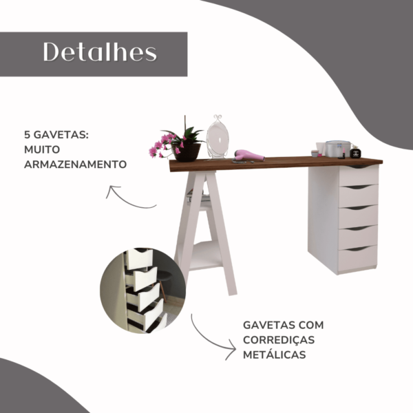Este produto é ótimo como escrivaninha ou penteadeira, pois decora e organiza seu quarto, fazendo do seu espaço um local prático, belo e único!