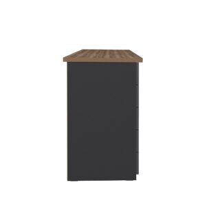 Além do design moderno da Escrivaninha Spirit, ela ainda proporciona muito espaço para você guardar suas coisas, pois de um lado tem duas amplas prateleiras e do outro tem cinco gavetas, onde você pode guardar as mais variadas coisas! Aliás, o revestimento desse produto é todo em BP, o que garante facilidade na hora de limpar e muito mais resistência a desgastes e a umidade!
