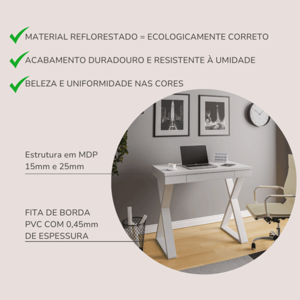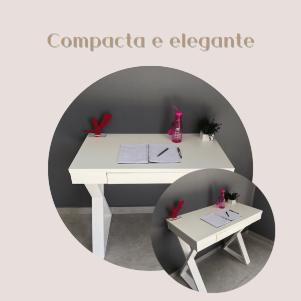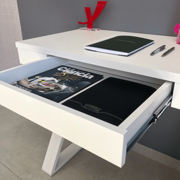 Uma grande vantagem desta escrivaninha é que ela é super versátil, ou seja, pode ser usada em qualquer ambiente que você imaginar, sendo uma mesa para estudar, trabalhar, jogar, ou um suporte para trabalhos artesanais como costura, pintura e desenho! Basta deixar a imaginação te levar…