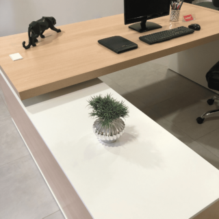 Base do balcão em MDP 25mm com fita de borda ABS com 0,45mm de espessura;