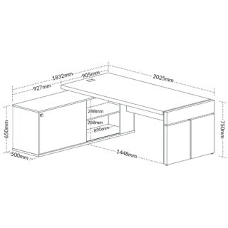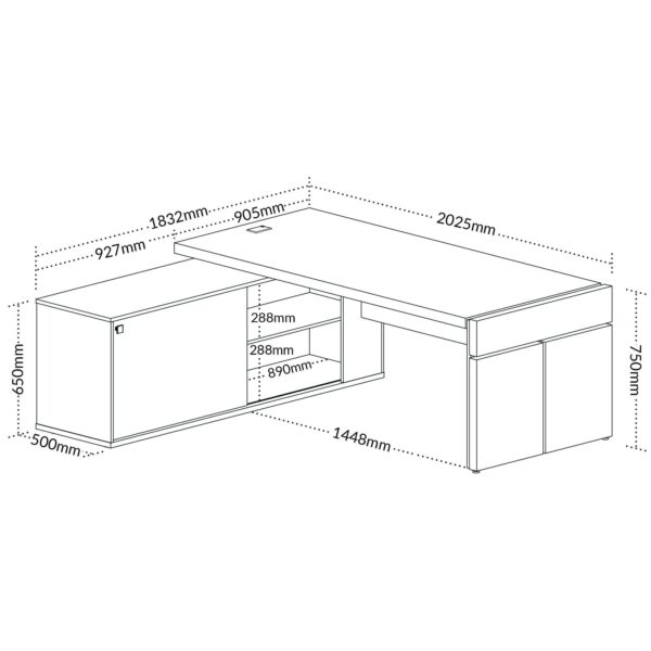 Mesa Diretor em L Dinamica com 1 Nicho, 1 Gaveta , 1 Pasta e 1 Armário de 1 Porta