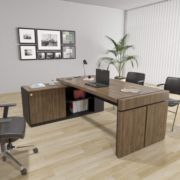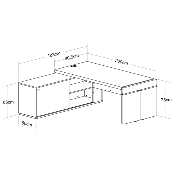 Mesa Diretor em L Dinamica com 1 Nicho, 1 Gaveta , 1 Pasta e 1 Armário de 1 Porta