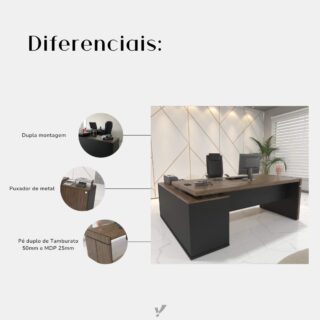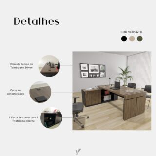 Faça do seu escritório um ambiente moderno e inspirador com esta Estação de Trabalho, projetada para conciliar elegância, requinte e conforto! A montagem do balcão pode ser feita para o lado esquerdo ou direito, lhe proporcionando maior flexibilidade, enquanto sua aparência versátil garante que o produto possa ser usado em diversos ambientes com estilos diferentes, sempre dando um toque especial.