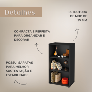 Deseja organizar sua casa ou escritório? A Estante Clean da Artany é perfeita para você que busca organização sem perder seu estilo e sua essência! Com design elegante e versátil, esta estante pode ser usada nos mais variados ambientes: sala, quarto, escritório, lavanderia e até mesmo em salas comerciais! É perfeito para guardar livros, caixas, brinquedos, arquivos, e para expor suas decorações também, pois além de ser útil, este produto também é decorativo e compacto, otimizando qualquer espaço! Com 15mm de espessura, as prateleiras são muito mais resistentes a empenamento que os outros produtos do mercado! O revestimento é feito em BP e as bordas são de PVC, garantindo uma maior resistência a impactos, atrito e umidade, e certificando uma maior durabilidade ao móvel. Com tantas qualidades e funções, você precisa adquirir a sua agora!