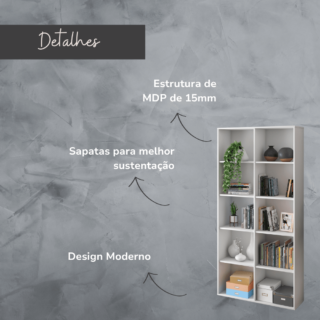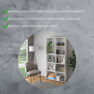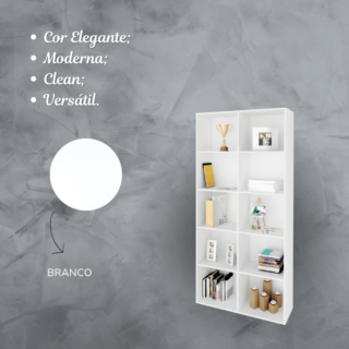 Deseja organizar sua casa ou escritório? A Estante Clean da Artany é perfeita para você que busca organização sem perder seu estilo e sua essência! Com design elegante e versátil, esta estante pode ser usada nos mais variados ambientes: sala, quarto, escritório, lavanderia e até mesmo em salas comerciais! É perfeito para guardar livros, caixas, brinquedos, arquivos, e para expor suas decorações também, pois além de ser lindo, este produto também é útil e espaçoso, otimizando qualquer ambiente! Com 15mm de espessura, as prateleiras são muito mais resistentes a empenamento que os outros produtos do mercado! O revestimento é feito em BP e as bordas são de PVC, garantindo uma maior resistência a impactos, atrito e umidade, e certificando uma maior durabilidade ao móvel. Com tantas qualidades e funções, você precisa adquirir a sua agora!