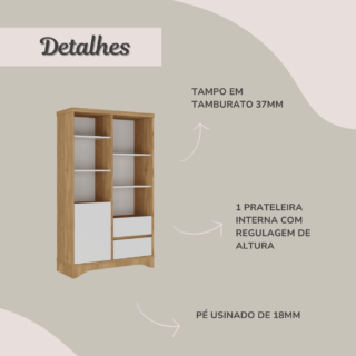 A sutil curvatura do pé traz o toque final de leveza ao móvel, enquanto materiais de alta qualidade e uma estrutura resistente de MDP com um lindo acabamento BP garantem que seu móvel será estável e de longa durabilidade. Com a traseira revestida, esta estante livreiro também pode ser usada como divisória de ambientes.