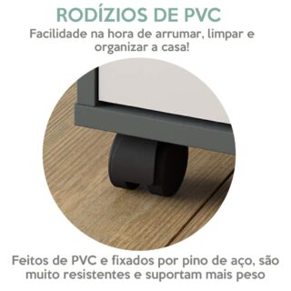 – Rodízios em PVC com 55mm de altura e fixação por chapa de aço;