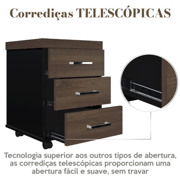 Gaveteiro Tamburato 3 Gavetas II – Charuto/Preto 6089