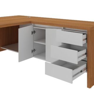 A qualidade é de alto padrão, garantida por estrutura em MDP e peças de Tamburato com 37 mm de espessura, com acabamento BP amadeirado lindo e muito agradável ao toque, para tornar seu momento de trabalho perfeito!