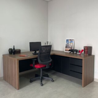Mesa Diretor em L Dinamica com 1 Nicho, 1 Gaveta, 1 Pasta e 1 Armário de 1 Porta 170×160 cm ATC1716