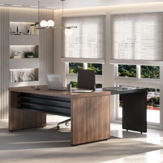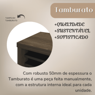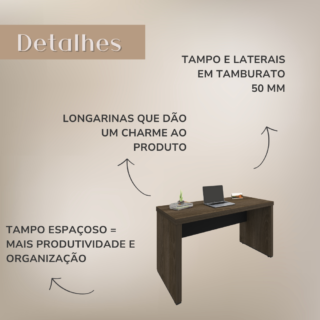 Organize seu escritório para maior produtividade com a Mesa Tamburato 1400, projetada para conciliar elegância, requinte e conforto. Longarinas horizontais garantem um design contemporâneo e versátil, permitindo com que a mesa possa ser usada em diversos ambientes com estilos diferentes, inclusive em home office, sempre dando um toque especial. O espaçoso tampo garante muito conforto e comodidade, já que você poderá trabalhar ou estudar com amplo espaço para suas coisas. As laterais e o tampo são de Tamburato, peças de 50mm de espessura, que garantem um produto robusto, forte e sofisticado. O revestimento é feito em BP e as bordas são de PVC, proporcionando resistência a impactos, atrito e umidade, certificando uma maior durabilidade ao móvel.