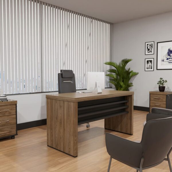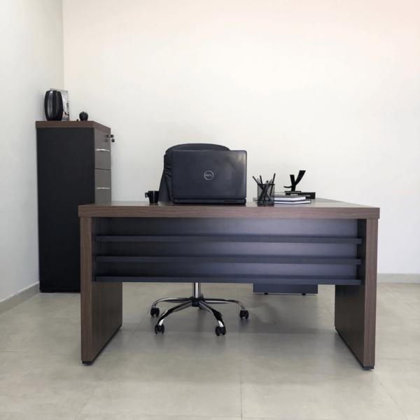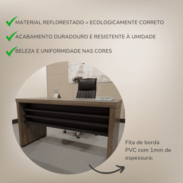 Organize seu escritório para maior produtividade com a Mesa Tamburato 1400, projetada para conciliar elegância, requinte e conforto. Longarinas horizontais garantem um design contemporâneo e versátil, permitindo com que a mesa possa ser usada em diversos ambientes com estilos diferentes, inclusive em home office, sempre dando um toque especial. O espaçoso tampo garante muito conforto e comodidade, já que você poderá trabalhar ou estudar com amplo espaço para suas coisas. As laterais e o tampo são de Tamburato, peças de 50mm de espessura, que garantem um produto robusto, forte e sofisticado. O revestimento é feito em BP e as bordas são de PVC, proporcionando resistência a impactos, atrito e umidade, certificando uma maior durabilidade ao móvel.