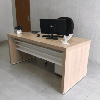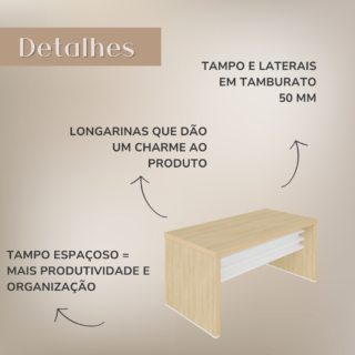 Organize seu escritório para maior produtividade com a Mesa Tamburato 1600, projetada para conciliar elegância, requinte e conforto. Longarinas horizontais garantem um design contemporâneo e versátil, permitindo com que a mesa possa ser usada em diversos ambientes com estilos diferentes, inclusive em home office, sempre dando um toque especial. O espaçoso tampo garante muito conforto e comodidade, já que você poderá trabalhar ou estudar com amplo espaço para suas coisas. As laterais e o tampo são de Tamburato, peças de 50mm de espessura, que garantem um produto robusto, forte e sofisticado. O revestimento é feito em BP e as bordas são de PVC, proporcionando resistência a impactos, atrito e umidade, certificando uma maior durabilidade ao móvel.