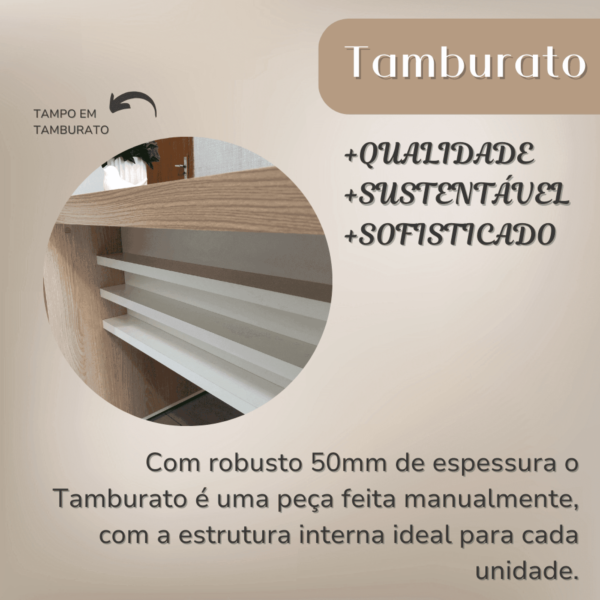 Tampo e laterais em Tamburato 50mm com fita de borda PVC com 1mm de