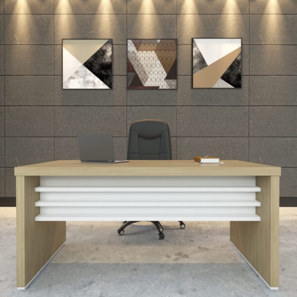 Organize seu escritório para maior produtividade com a Mesa Tamburato 1600, projetada para conciliar elegância, requinte e conforto. Longarinas horizontais garantem um design contemporâneo e versátil, permitindo com que a mesa possa ser usada em diversos ambientes com estilos diferentes, inclusive em home office, sempre dando um toque especial. O espaçoso tampo garante muito conforto e comodidade, já que você poderá trabalhar ou estudar com amplo espaço para suas coisas. As laterais e o tampo são de Tamburato, peças de 50mm de espessura, que garantem um produto robusto, forte e sofisticado. O revestimento é feito em BP e as bordas são de PVC, proporcionando resistência a impactos, atrito e umidade, certificando uma maior durabilidade ao móvel.
