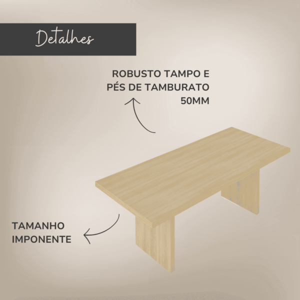A robusta estrutura em Tamburato de 50 mm de espessura torna o produto ainda mais grandioso e sofisticado. O acabamento amadeirado em BP é agradável ao toque e resistente ao uso. Encante-se com a Mesa Tamburato 2000!