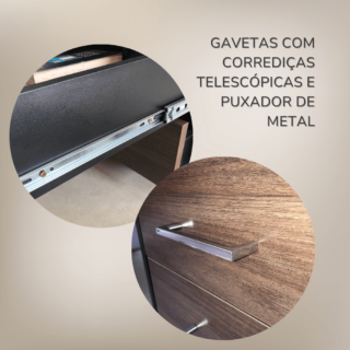 – Gavetas com trilho telescópico;