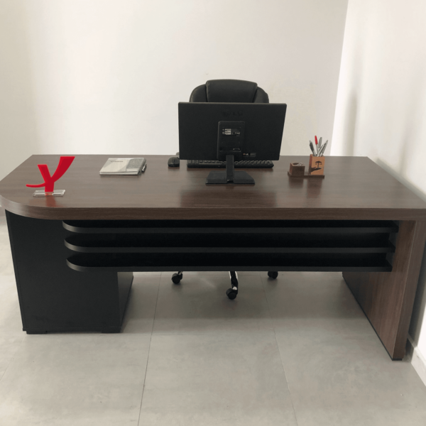MESA TAMBURATO C/GAVETAS II LD CHARUTO/PRETO