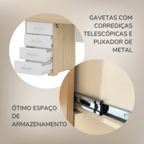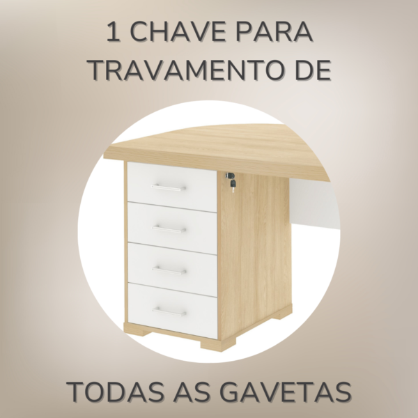 Um escritório moderno precisa de móveis à altura, e a Mesa Tamburato com Gavetas é ideal para fazer do ambiente corporativo um local agradável e sofisticado! Ela é perfeita para aumentar o bem estar e a produtividade dos colaboradores, já que possui um tamanho adequado para maior conforto e uma ampla superfície de trabalho. Além disso, esta mesa conta com um gaveteiro com 4 gavetas que podem ser trancadas, para que seu trabalho fique ainda mais organizado e seguro. Corrediças telescópicas e puxadores de metal cromado nas gavetas garantem maior qualidade e requinte.