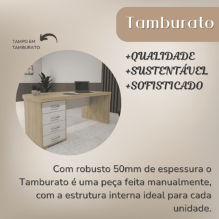 Laterais e tampo em Tamburato de 50mm de espessura garantem a qualidade e a robustez de móveis de alto padrão. O revestimento feito em BP e as bordas de PVC asseguram resistência a impactos, atrito e umidade, fazendo com que seu móvel permaneça conservado e duradouro. Com design elegante e versátil, este produto pode ser usado nos mais variados tipos de escritório e também em seu home office.