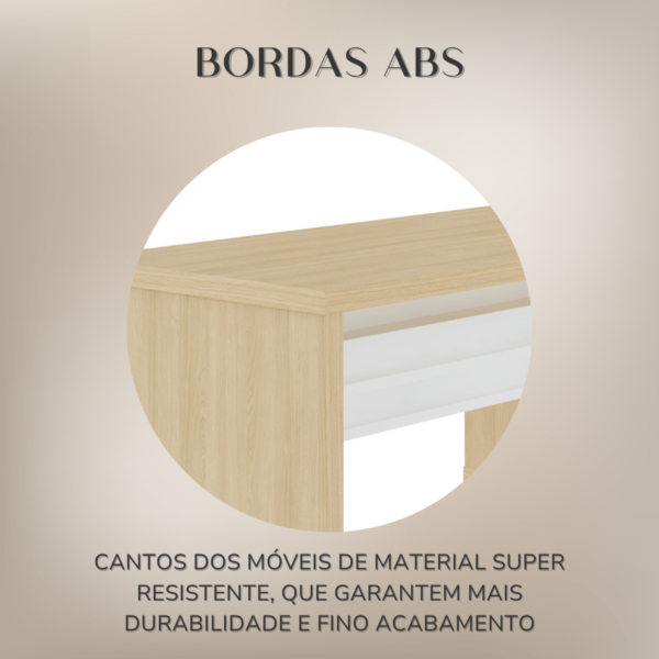 Frente das gavetas em MDP 18mm com fita de borda PVC com 1mm de espessura;